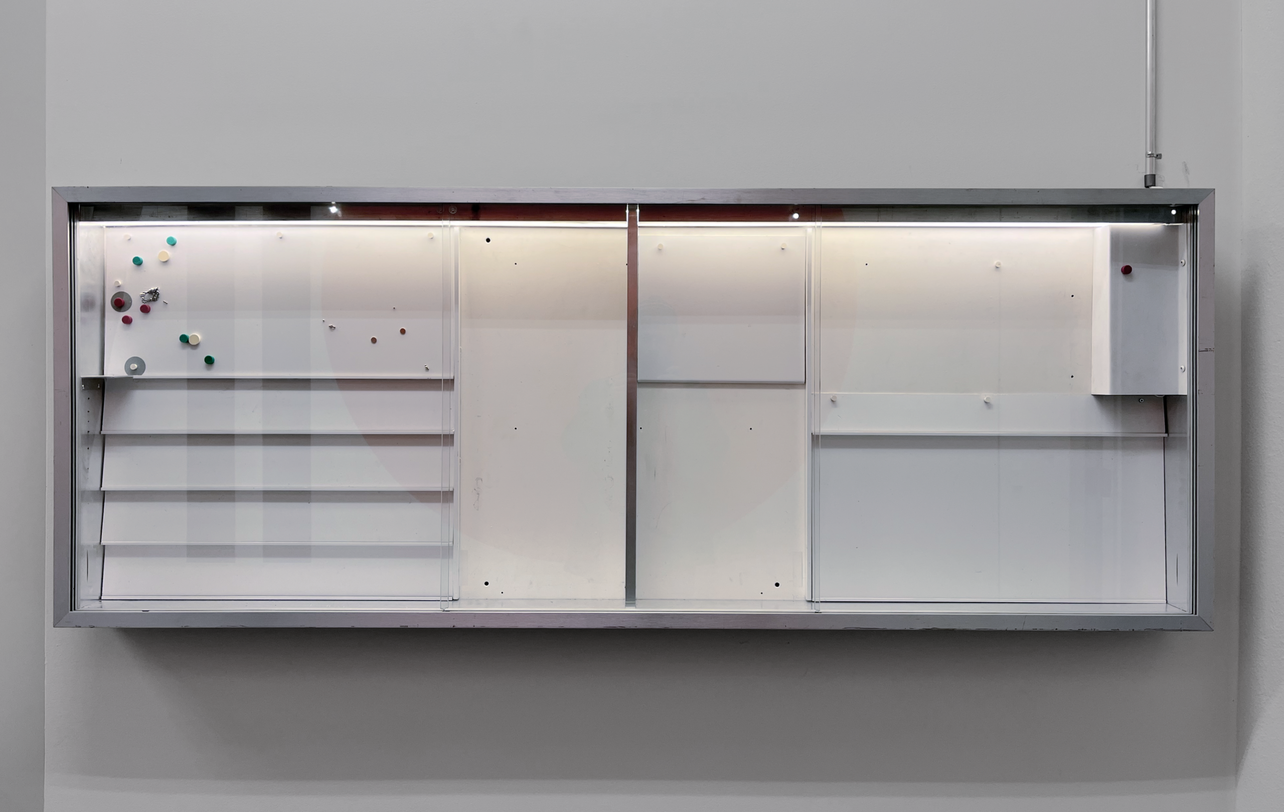 As the space gradually changes and becomes inhabited by the surrounding fauna and flora, works of invited artists may appear, like withered leafs blown in through the window by the wind. No openings will be held for the exhibitions, and a work of art may be exhibited for one day or remain installed for the duration of the project. Additional information is presented in the display case.